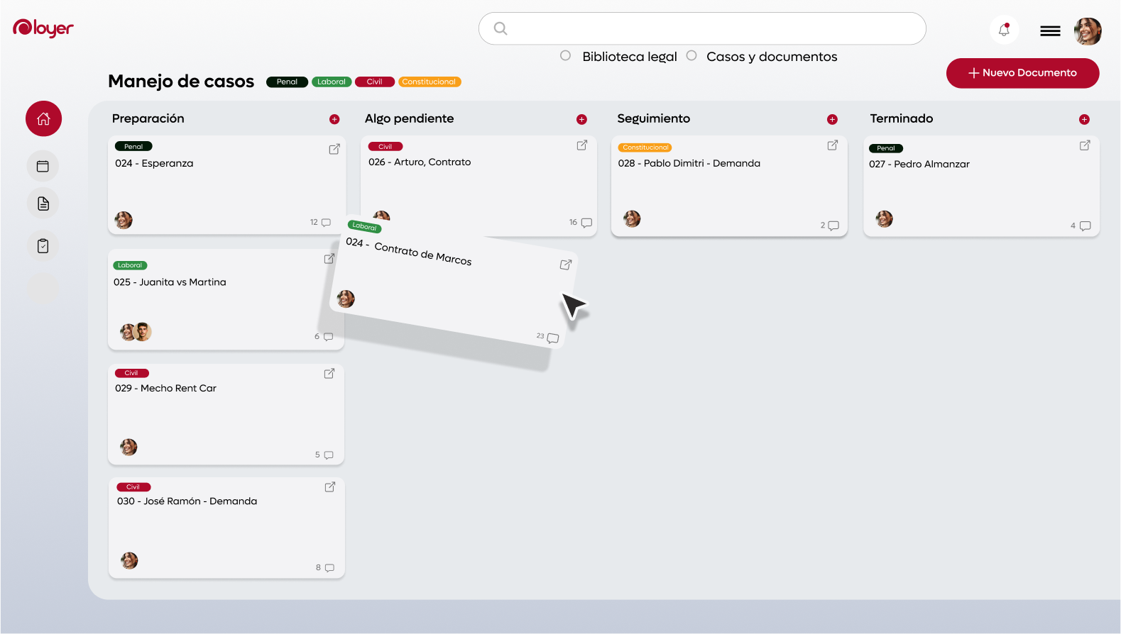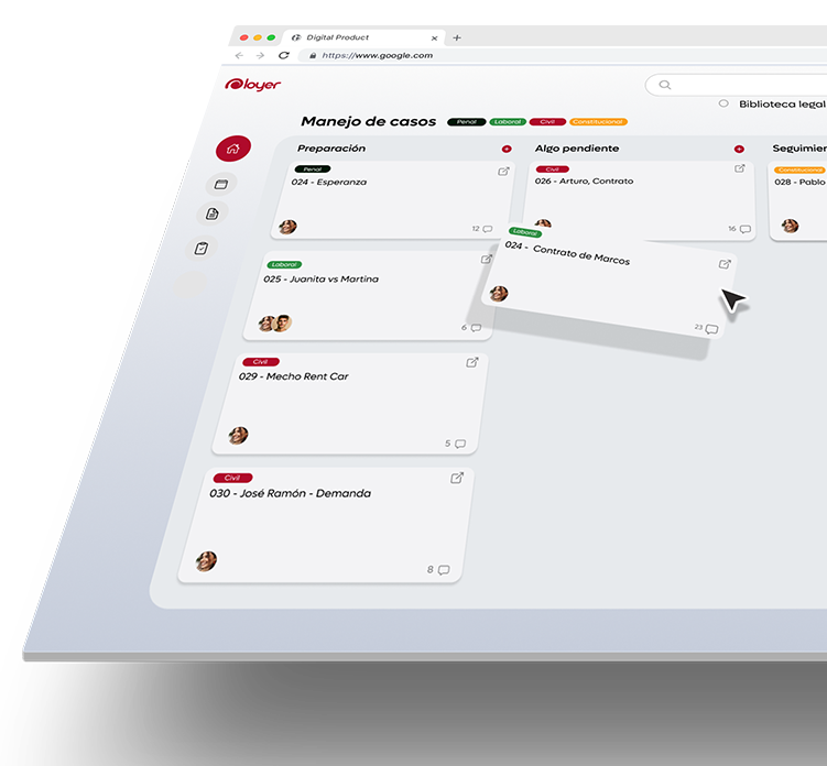 Loyer es la solución integral que necesitas para llevar tu práctica legal al siguiente nivel. Organiza y gestiona tus documentos legales de manera eficiente, con herramientas diseñadas específicamente para las demandas del trabajo jurídico. Simplifica tu día a día y dedícale más tiempo a lo que realmente importa: tus clientes